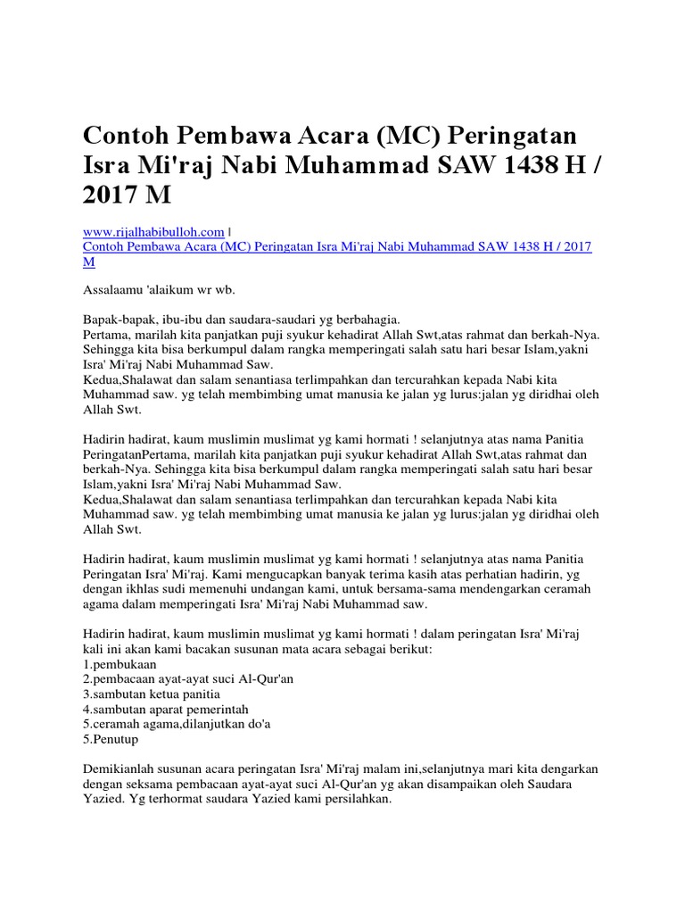 * teks ceramah islami / pidato isra mi'raj ini disampaikan oleh bpk h. Isra' mi'raj secara harfiah diterjemahkan sebagai malam pendakian. Isra mi'raj terjadi pada tanggal 27 rajab tahun 11 hijriah. Syaikh wahbah az zuhaili dalam tafsir al munir menjelaskan, isra (اسرى) atau sara (سرى) artinya adalah perjalanan di malam hari. Sehingga acara peringatan isra' mi'raj, dalam bentuk apapun acara tersebut dikemas, merupakan amalan bid'ah, sebuah kemungkaran tidak bisa sesorang akan memahaminya, jika hanya datang ke masjid mengikuti tauziyah karena peringatan isra' mi'raj saja. Ceramah isra mi'raj nabi muhammad saw ini lain dari biasanya. Sedangkan secara istilah adalah perjalanan yang dilakukan oleh. Dari ide inilah eistein mengembangkan rumus terkenalnya e = mc². Ibrah dan hikmah isra' mi'raj. Lembaga kemanusiaan aceh for syam adalah wadah dan komunitas kaum muslimin di aceh dan nusantara, untuk membantu kaum muslimin di negeri syam. Bisakah isra mi raj di logika kan buya syakur yasin ma. Simak aja di #ngobrolintaqwa episode 22 ini! Berzina karena tak diizinkan nikah lagi, berdosakah istri?